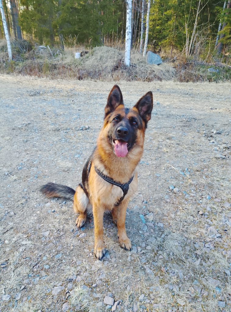 2-vuotias leikattu saksanpaimenkoira narttu etsii uutta kotia, mieluiten omakotitalosta.